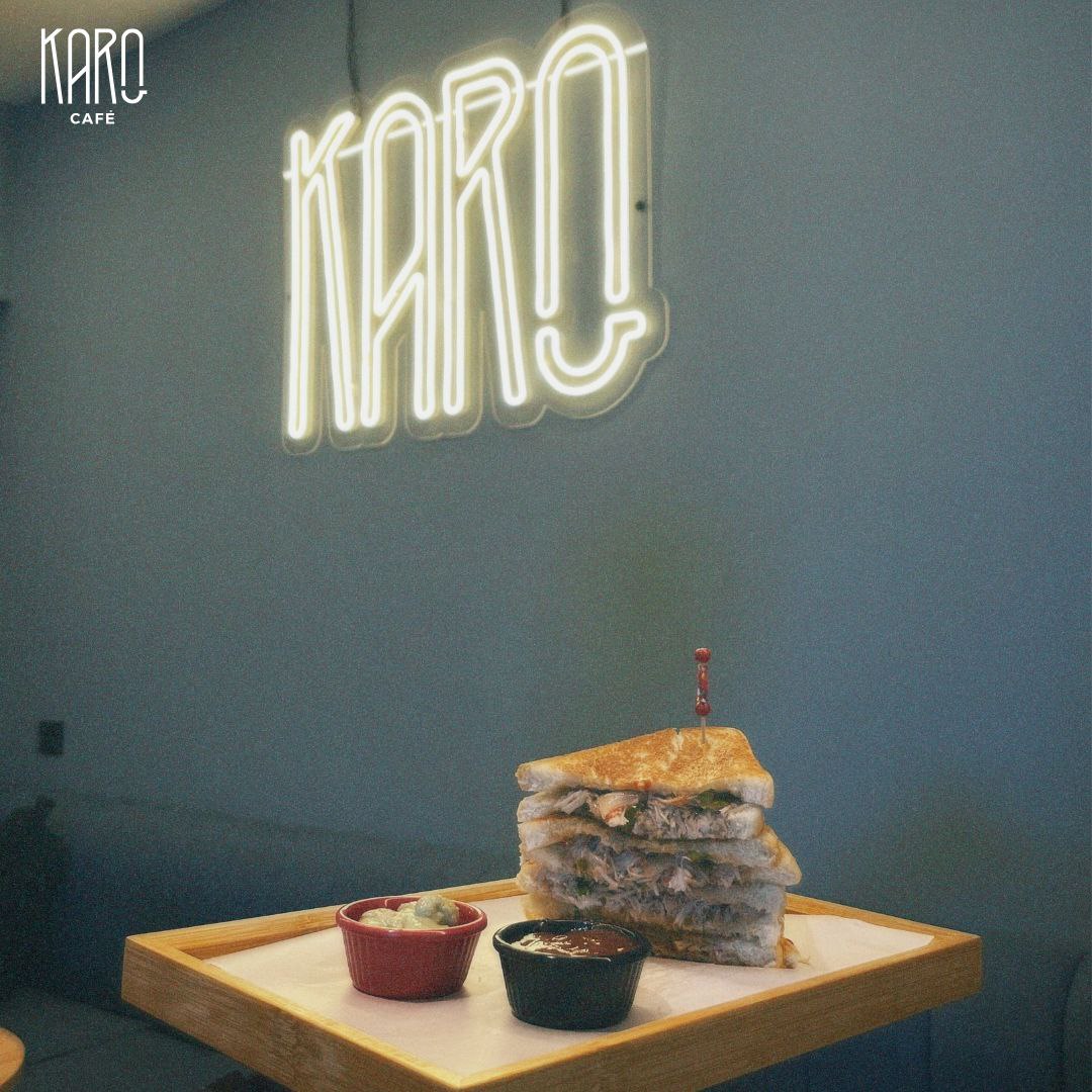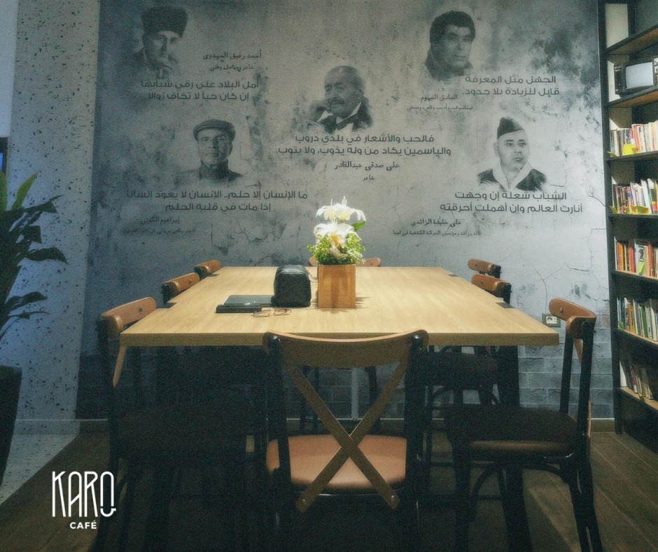 Karo Café, its locations are Naser Street, Tripoli, and Mitiga Airport.